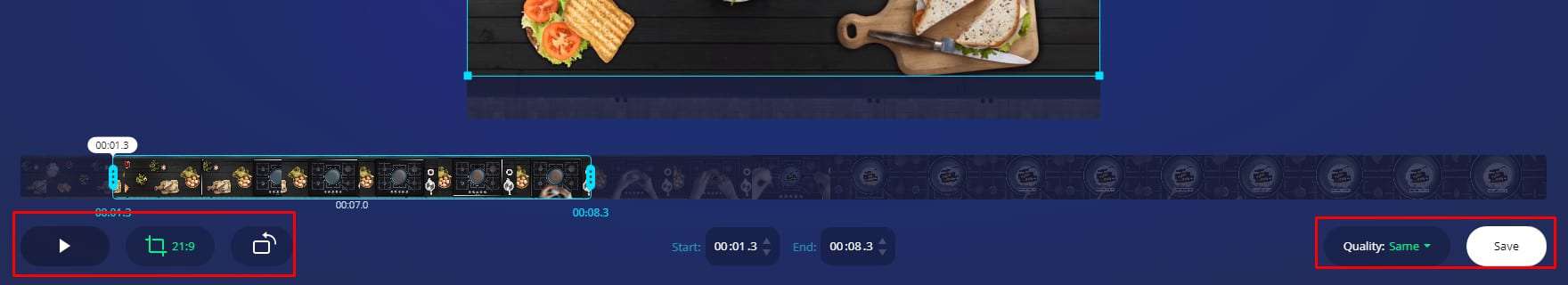- سوف يتم الآن تحميل مقطع الفيديو على الموقع ،يمكنك بعد ذلك اقتصاص المقطع كما هو موضع بالصورة من خلال تحريك الأسهم سواء من اليمين أو من اليسار .