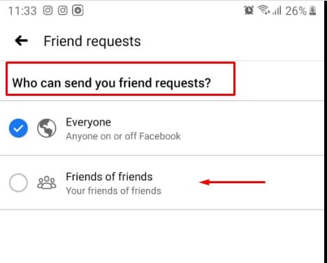 • قم بالضغط على خيار من الذي يمكنه إرسال طلبات صداقة إليك Who can send your friend requests .
