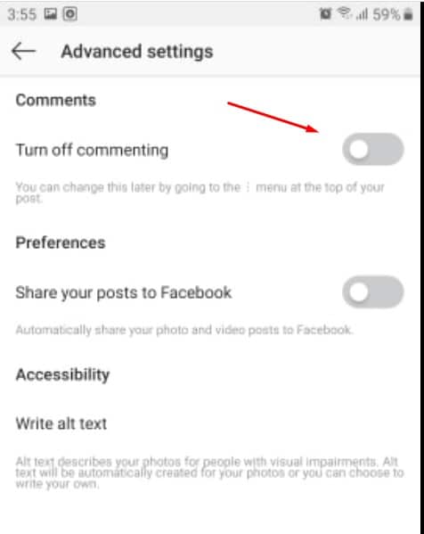 طريقة إيقاف التعليقات على منشور انستقرام قبل نشره