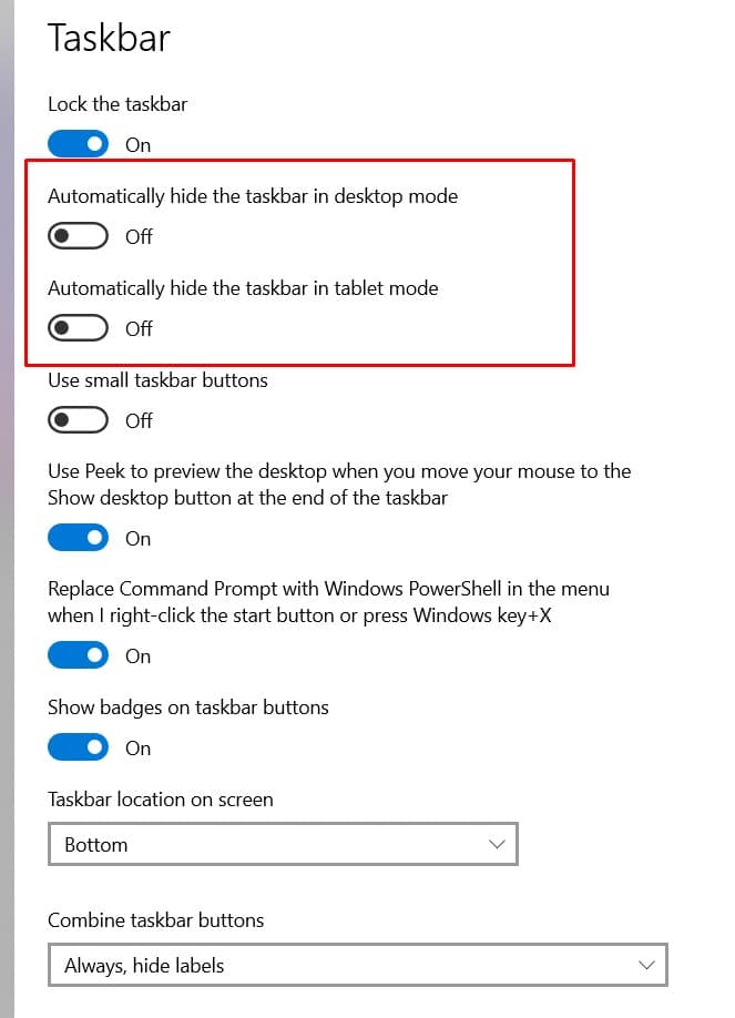 طريقة إخفاء شريط المهام تلقائياً بويندوز 10 :