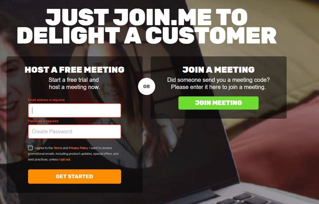 Join.me منصة إلكترونية رائعة يمكنك من خلالها الاتصال بجهاز أخر عن بُعد بكل سهولة ولكن بعد إتمام بعض خطوات التسجيل عن الموقع ،فقط قم بالدخول إلي موقع المنصة من هنا ثم اضغط على GET STARTING .