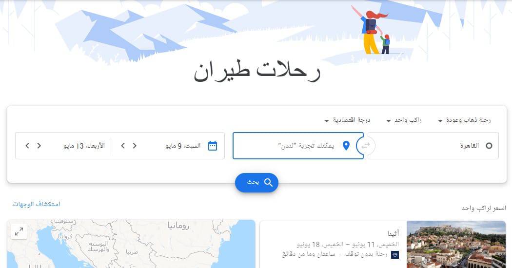 ما لا يعرفه الكثيرين أن شركة جوجل دخلت عالم السياحة والسفر وذلك من خلال موقعها جوجل فلايتس والذي يقدم عشرات العروض على حجوزات الطيران والفنادق والتي يمكنك الحصول عليها في جميع دول العالم وبأسعار تنافسية رخيصة لتستطيع حجز تذكرة الطيران الخاصة بك خلال دقائق معدودة ،كما يدعم الموقع اللغة العربية ويمكنك زيارته من هنا .