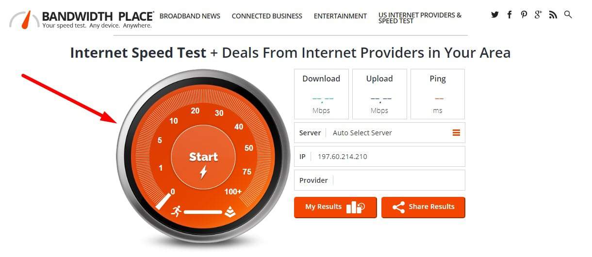 موقع Speed Of Me يمكنك اعتباره افضل موقع لقياس سرعة النت وذلك بسبب سرعة وسهولة استخدامه فبكل بساطة وسرعة تستطيع معرفة الكثير من المعلومات الدقيقة حول سرعة الإنترنت لديك ،وللقيام بذلك قم بزيارة الموقع من هنا ثم قم بالضغط على START TEST ليبدأ الموقع في قياس السرعة في الحال .