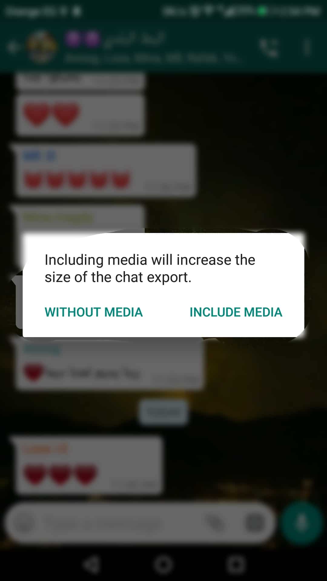 في تلك اللحظة قم بتحديد إذا كنت تريد مشاركة الدردشة بملفات الوسائط الموجودة بها وهي تشمل التسجيلات الصوتية والصور والفيديوهات الموجودة أم لا ثم قم بتحديد ما تريده ثم قم بالانتقال إلي الخطوة التالية .