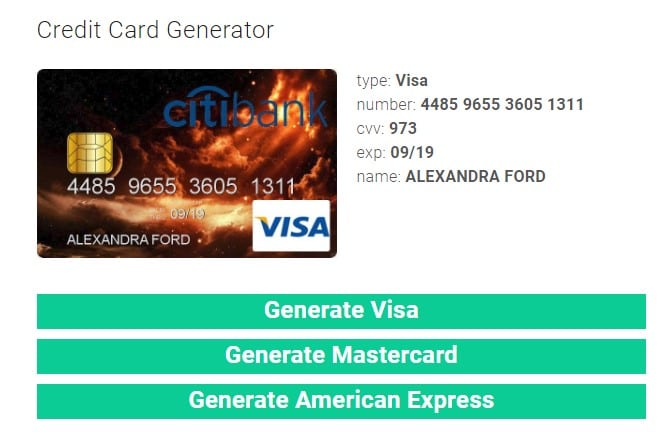 موقع جديد يُقدم لك مجموعة كبيرة من كروت الفيزا الوهمية بمختلف أنواعها مثل بطاقات الفيزا ،وبطاقات ماستر كارد ،وبطاقات أمريكان اكسبريس وذلك من خلال خطوات سهلة وسريعة لتستطيع بعدها من استخدام هذه البطاقات في تفعيل جميع حساباتك من خلال ربطها بالبايبال وفي الفقرة القادمة سوف نستعرض معك طريقة استخدام الموقع وطريقة توليد ارقام كروت فيزا وهمية .