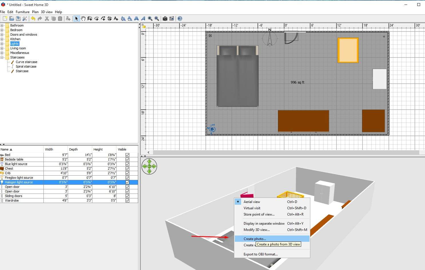 - تستطيع إضافة الكثير من الإضافات المختلفة فمثلاً من تبويب Lights تستطيع إضافة لمبات الإضاءة إلي أركان الغرفة ،كما تستطيع إضافة الستائر وبعض الديكورات الجمالية أو الحواجز حسب حاجة التصميم من خلال تبويب Miscellaneous ،أو يمكنك إضافة السلالم بكل أشكالها من خلال تبويب Staircases .
