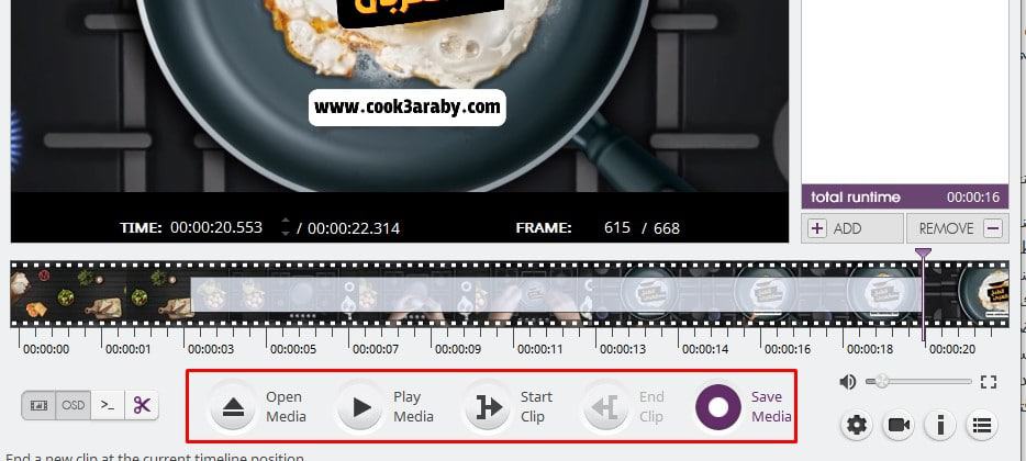 - بعد ذلك قم بالضغط على تشغيل الفيديو ،ثم قم بالضغط على Start Clip لتبدأ عملية القص وعند النقطة التي ترغب بها قم بالضغط على End Clip .