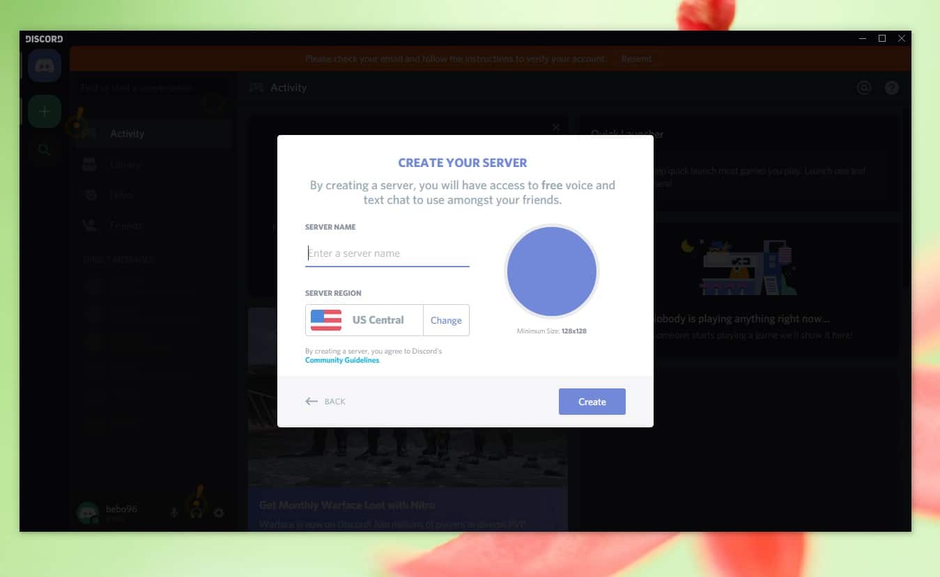 الآن قم باختيار أيقونة للسيرفر ثم قم باختيار اسم جديد كما هو موضح بتلك الصورة بالضبط .