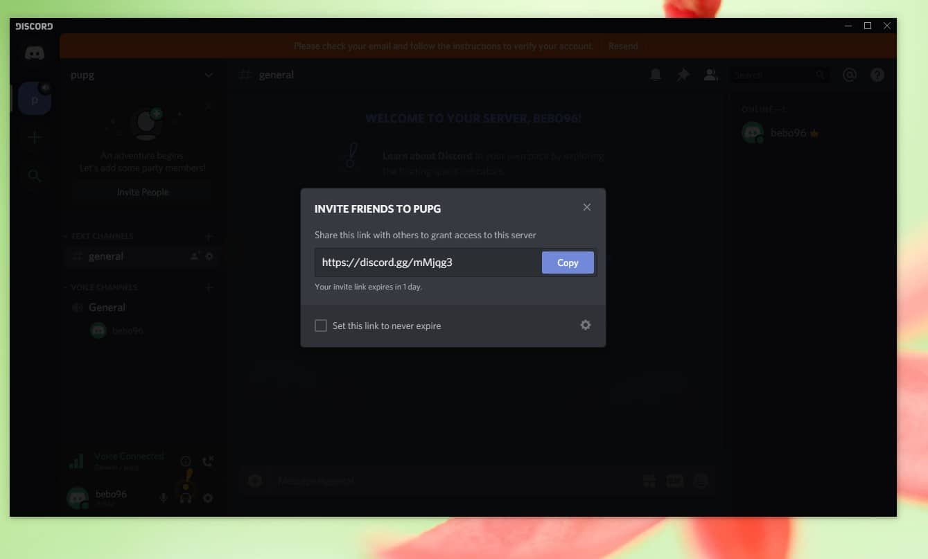 وعلى الفور ستحصل على رابط يمكنك استخدامه لدعوه أصدقائك من يقوموا باستخدام هذا البرنامج للانضمام إلي هذا السيرفر والبدء في عمل المحادثات الصوتية بكل سهولة .
