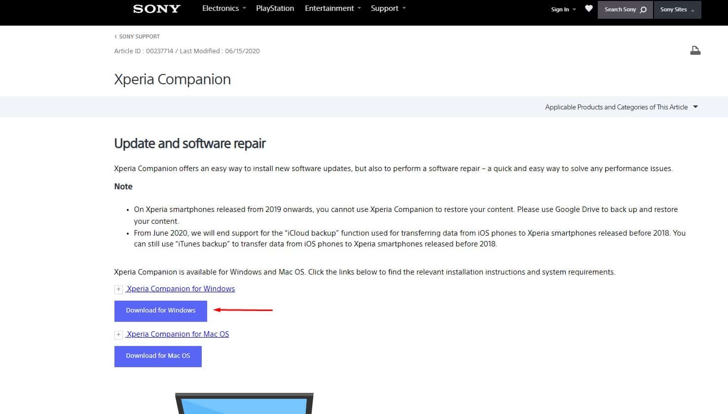 تحميل برنامج Xperia Companion لإدارة هواتف سوني من الحاسوب