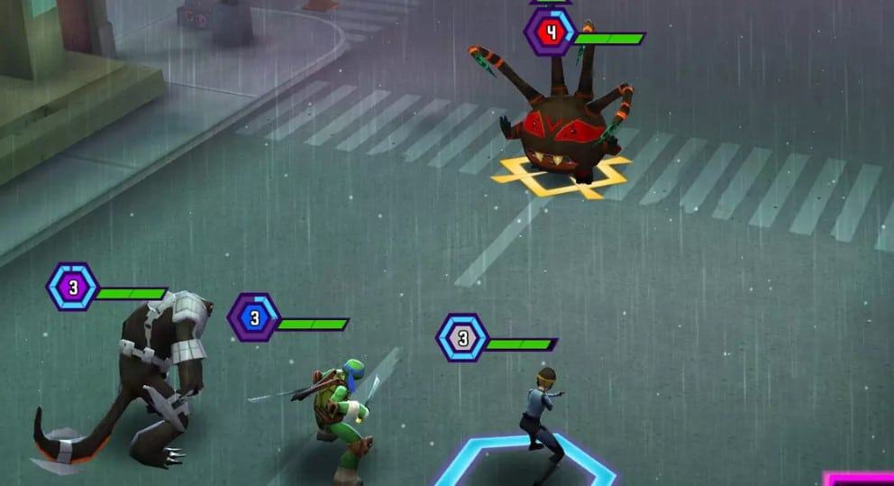 الوحوش : بعد تحميل اللعبة البدء في دخول المغامرات سوف تظهر لك الكثير من الوحوش المعادية والتي تتطلب منك مهارة في القضاء عليها باستخدام أفراد الفريق وذلك من خلال الكثير من المطارات والمغامرات المثيرة للحفاظ على أفراد فريق السلاحف الخارق .