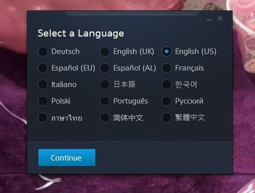بعد ذلك سيتم تحميل ملف صغير على حاسوبك وهو سيكون الطريق لبدء عملية تحميل اللعبة على جهازك فقط قم بفتح الملف ثم قم باختيار اللغة كما هو بتلك الصورة أيضاً .