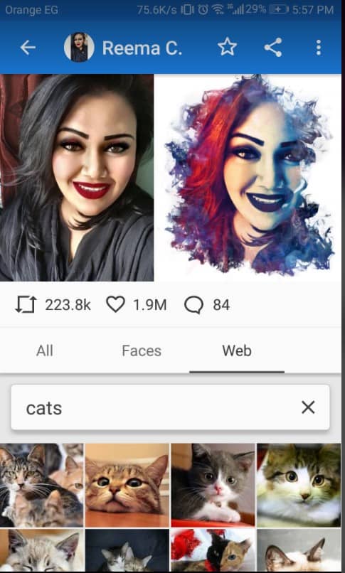 والآن بعد اختيار الصورة التي تريد عمل مثيل لها يمكنك البدء في تحديد الصورة التي تريد التعديل عليها أما من هاتفك من خلال خيار All أو يمكنك التعديل على صورة من على شبكة الإنترنت من خلال خيار Web .