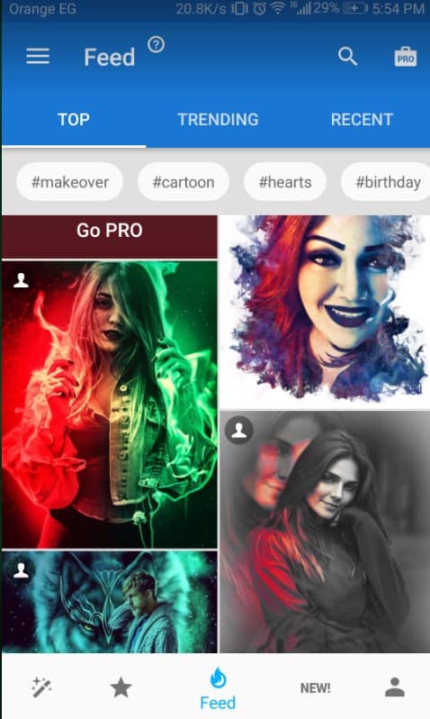 عملية تحويل الصورة الى رسم بالالوان أو كارتون من أسهل الأمور التي يمكنك القيام بها سواء من خلال الكمبيوتر أو من خلال الهاتف ولكن من خلال تلك الفقرة سنتعرف على كيفية القيام بهذا الأمر من خلال هاتفك الذكي عن طريق تطبيق Photo Lap والذي تستطيع تحميله على هاتفك من خلال الضغط هنا لهواتف الاندرويد أو الضغط هنا لهواتف الايفون وأجهزة الآيباد وسريعاً ستتمكن من البدء في عملية تحميل برنامج تحويل الصور الى رسم بالالوان وستظهر لك واجهة البرنامج بعد الانتهاء من التحميل كما هو بتلك الصورة .