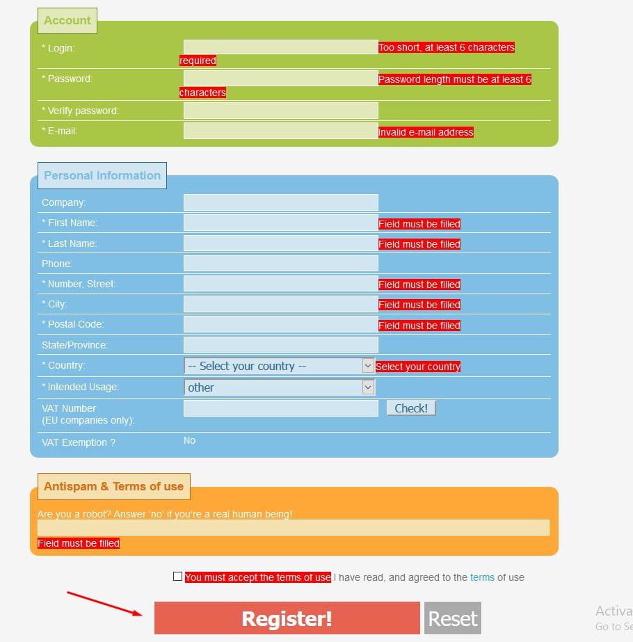 - بعد ملئ جميع البيانات قم بالضغط على Register ليتم إنشاء الحساب .