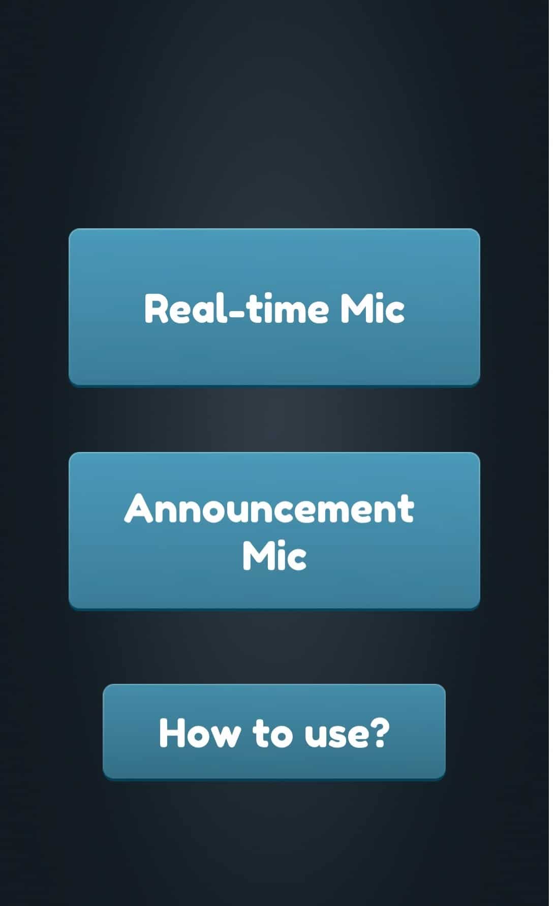 حتي تتمكن من تحويل الهاتف الي ميكروفون ينبغي أولا تحميل تطبيق Announcement Mike من خلال الرابط الموجود اسفل المقال، أو يُمكنك تحميله من متجر جوجل بلاي مباشرة ثم قم بفتحه لتظهر لك القائمة التالية :