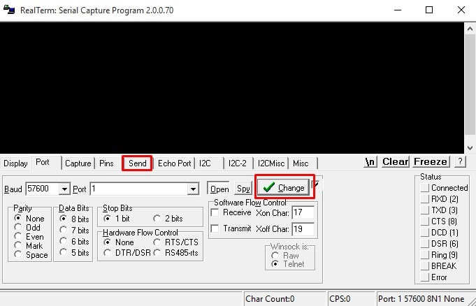 تعتمد الطريقة الأولي على استخدام برنامج RealTerm والذي سوف يقوم بعمل تخطي الحماية بشكل سريع ودون أي مشاكل تذكر ،في البداية قم بتحميل البرنامج ( رابط التحميل اسفل الفقرة ) ثم قم بنقله إلي بطاقة ذاكرة خارجة أو فلاش ميموري ثم قم بتوصيلها بالهاتف عن طريق كابل OGT ثم قم بفتح البرنامج على جهاز الكمبيوتر الخاص بك واتبع الخطوات التالية :