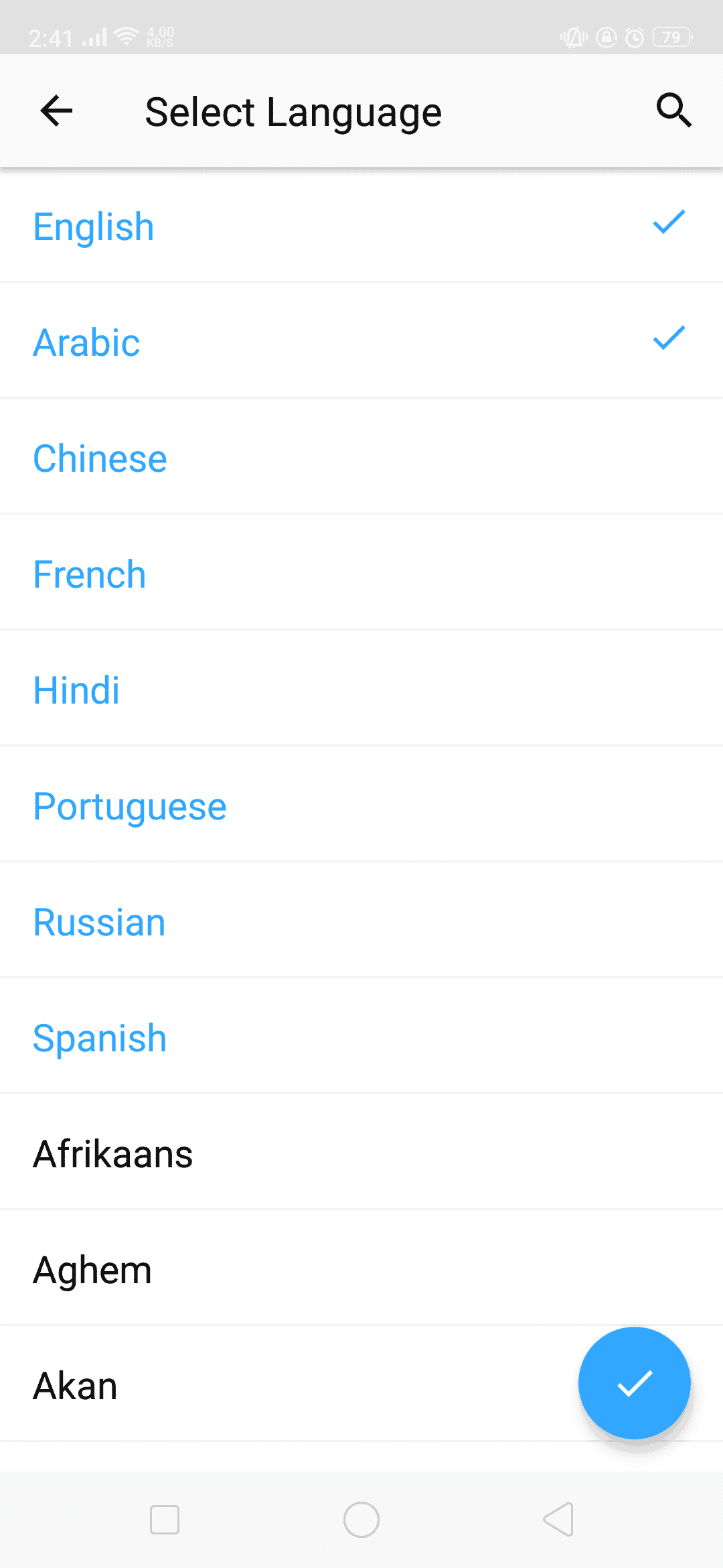 بعد ذلك عليك تحديد اللغات التي تتحدثها للمتابعة ولتكن مثلا العربية والانجليزية .