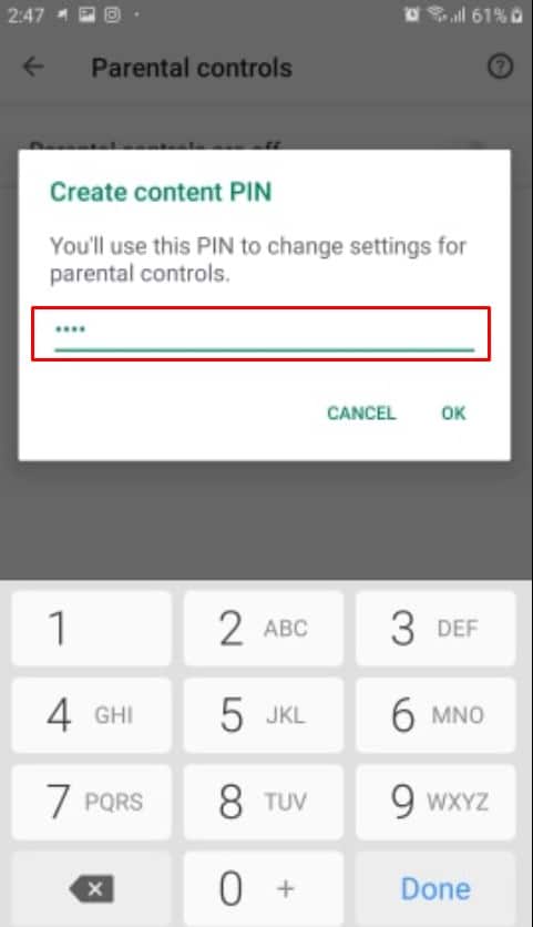 • في النافذة التالية قم بتفعيل الخيار ،وسو يُطلب منك كتابة كلمة مرور مكونة من 4 ارقام للتحكم في ضبط هذا الخيار وحدك ،فقم بكتابة الرقم واضغط على Ok .