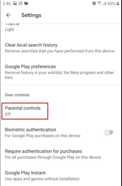 • بعد ذلك قم بالتمرير للأسفل ثم اضغط على خيار Parental Controls .