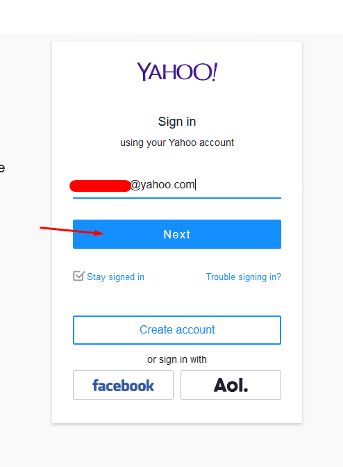 - بعد أن تدخل إلى رابط الصفحة سيطلب منك الموقع أن تقوم بتحديد الحساب الذي تريد حذفه من خلال إدخال البريد الإلكتروني الخاص بموقع ياهو ،قم بإدخاله ثم اضغط على Next ومن ثم تابع بإدخال كلمة السر الخاصة بحسابك .