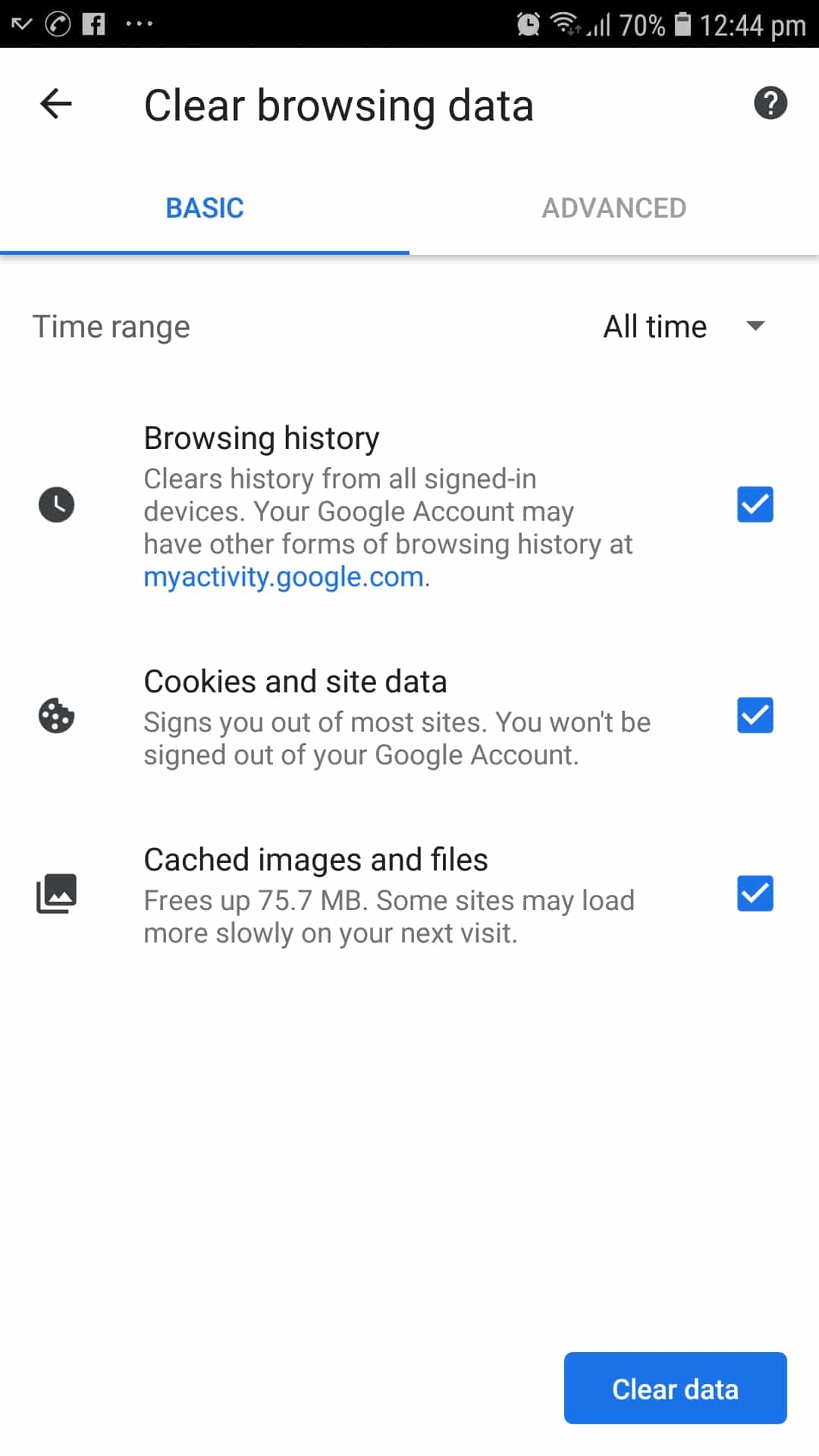 - في النافذة التالية سوف تجد قائمة بجميع المواقع التي قومت بزيارتها من خلال هذا المتصفح فقم بالضغط علي خيار Clear browsing data او مسح البيانات .