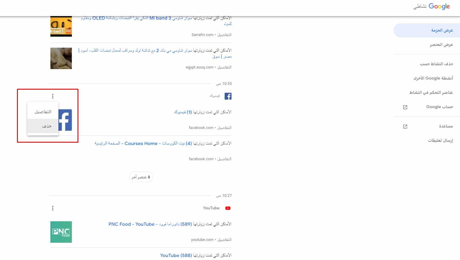 طريقة حذف سجل البحث من جوجل ويوتيوب وفيس بوك للكمبيوتر وللاندرويد وللايفون