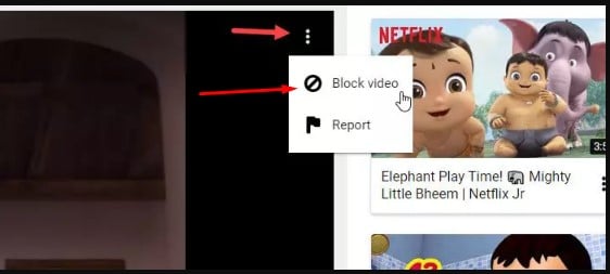 كما أوضحت أصدقائي بالفقرة السابقة قد يواجه الأهالي بعض مقاطع الفيديو التي يروا أنها غير مناسبة لأطفالهم وعلى الفور يمكنكم حظر هذا النوع من الفيديوهات ومنعها من الظهور مجدداً من خلال خطوة بسيطة للغاية فقط قم بالضغط على النقاط الثلاثة الموجودة على الفيديو ثم قم باختيار Block Video كما هو موضح بتلك الصورة بالضبط .