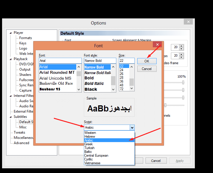 سادساً : وبعد أن تقوم بذلك عليك باختيار Arabic من اختيارات Script كما هو موضح لك من خلال الصورة التالية :
