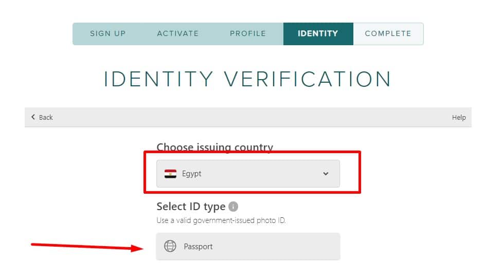 - في الصفحة التالية قم بتحديد بلدك ثم قم بالضغط على Passport .