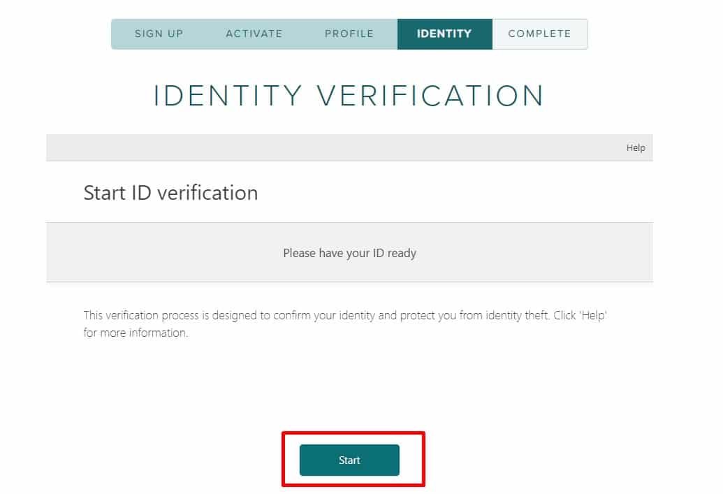 - بعد ذلك سوف تنتقل إلي صفحة تأكيد الهوية فقم بالضغط على Start .