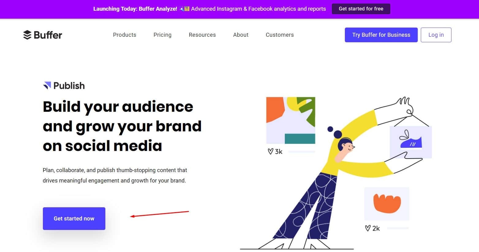 كما أوضحت بالفقرات السابقة سنقوم اليوم باستخدام موقع بفر من أجل القيام بهذا الأمر وفي البداية ستقوم بالدخول إلي الموقع من خلال الرابط الموجود في نهاية المقال لبدء عملية الاستخدام ثم الضغط على Get Started Now .