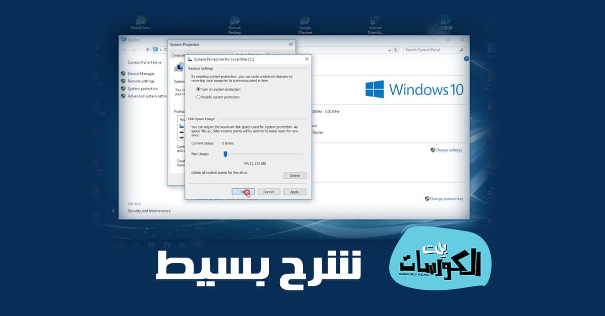كثيراً ما نقوم بتثبيت برامج غير مضمونة أو نقوم بشيء ما على جهاز الكمبيوتر الخاص بنا وقد يؤدي ذلك في كثير من الأحيان إلي تلف ملفات الويندوز أو تخريب لبعض وظائفه مما يترتب عليه ضرورة تثبيت نسخة ويندوز جديدة ،وقد يحدث أن يعبث احدي الصغار في جهازك مما يؤدي إلي نقل أو تخريب عشوائي لملفات الجهاز ،لذلك سوف نقوم اليوم بـ شرح نقطة استعادة النظام بويندوز 10 وهي طريقة مضمونة تماماً لحفظ ضبط الجهاز واستعادته في أي وقت في حالة حدوث أي تلف أو تخريب لملفات الويندوز .