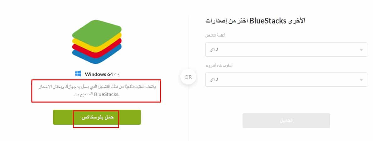 - في الصفحة التالية سوف يقوم الموقع بتوفير النسخة المناسبة لنظامك بشكل تلقائي ،فقط قم بالضغط على حمل بلوستاكس ليبدأ التحميل على الفور .