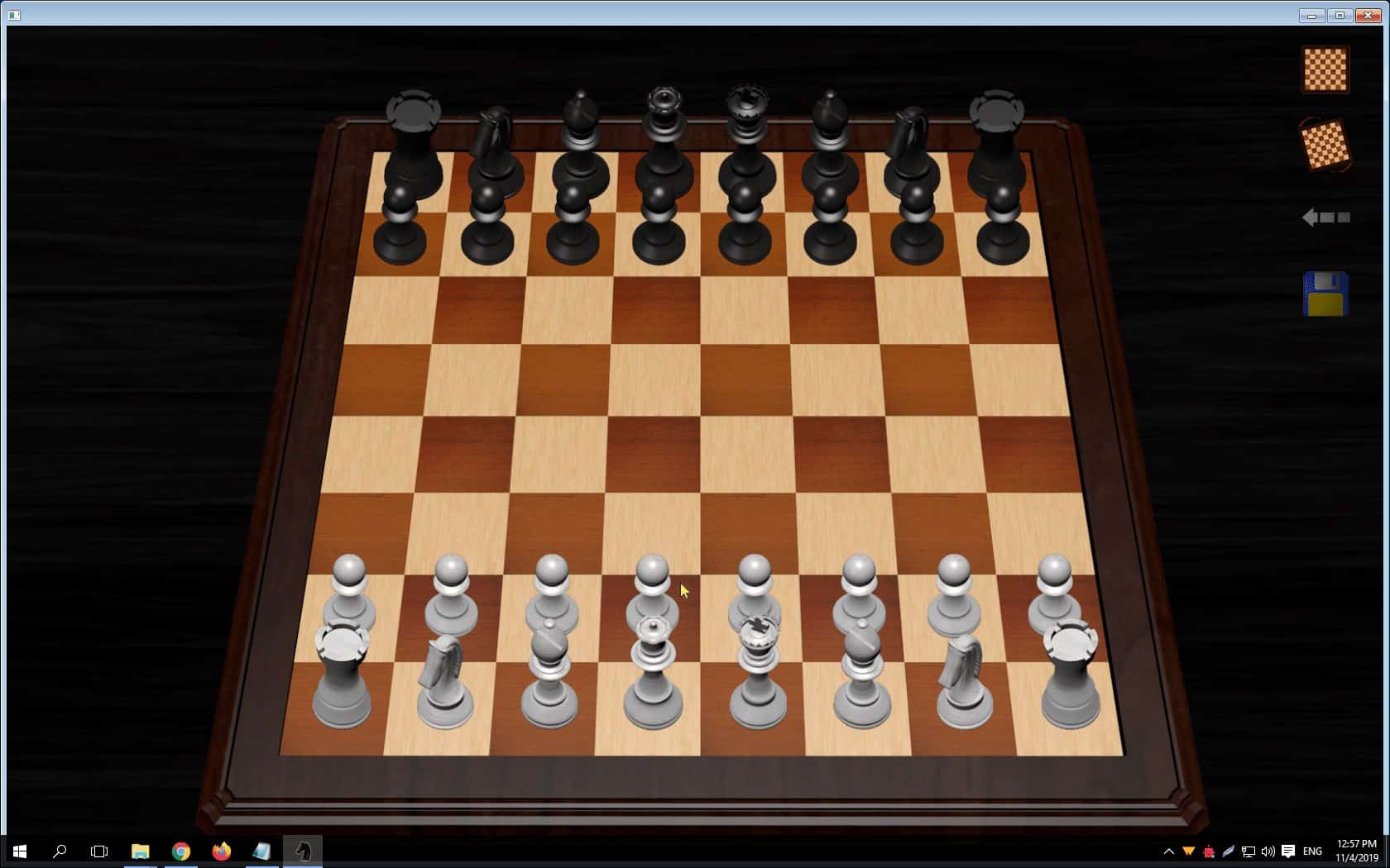 وأخيراً قم بتشغيل اللعبة بعد الانتهاء من الخطوة السابقة من خلال الضغط على New Game ثم على الفور قم بتحديد اللون الذي تريد اللعب به ثم قم بالبدء في عملية اللعب وستستمتع عزيزي القارئ بتجربة لعب رائعه حقاً وستشعر بوجود منافسة كبيرة بينك وبين النظام الذي تلعب أمامه .
