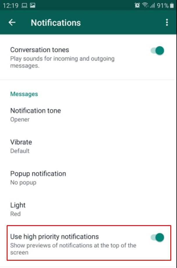 - في النافذة التالية قم بتعطيل خيار Use high notifications .