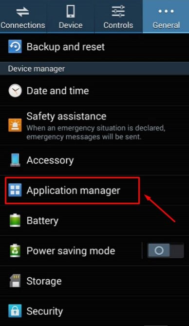 أولاً : قم بالدخول إلي الإعدادات Settings الموجودة بهاتفك بعد ذلك قم بالضغط على تطبيقات Applications Manager :