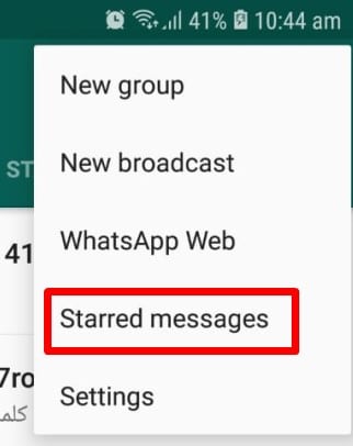- قم بالضغط علي خيار الرسائل المميزة بنجمة أو Starred Message ليتم عرض جميع الرسائل المميزة في هذه المحادثة .