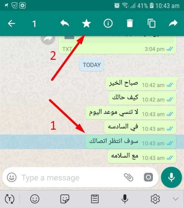 - قم بتكرار العملية مع جميع رسائلك الهامة سواء في نفس المحادثة أو محادثة أخري .