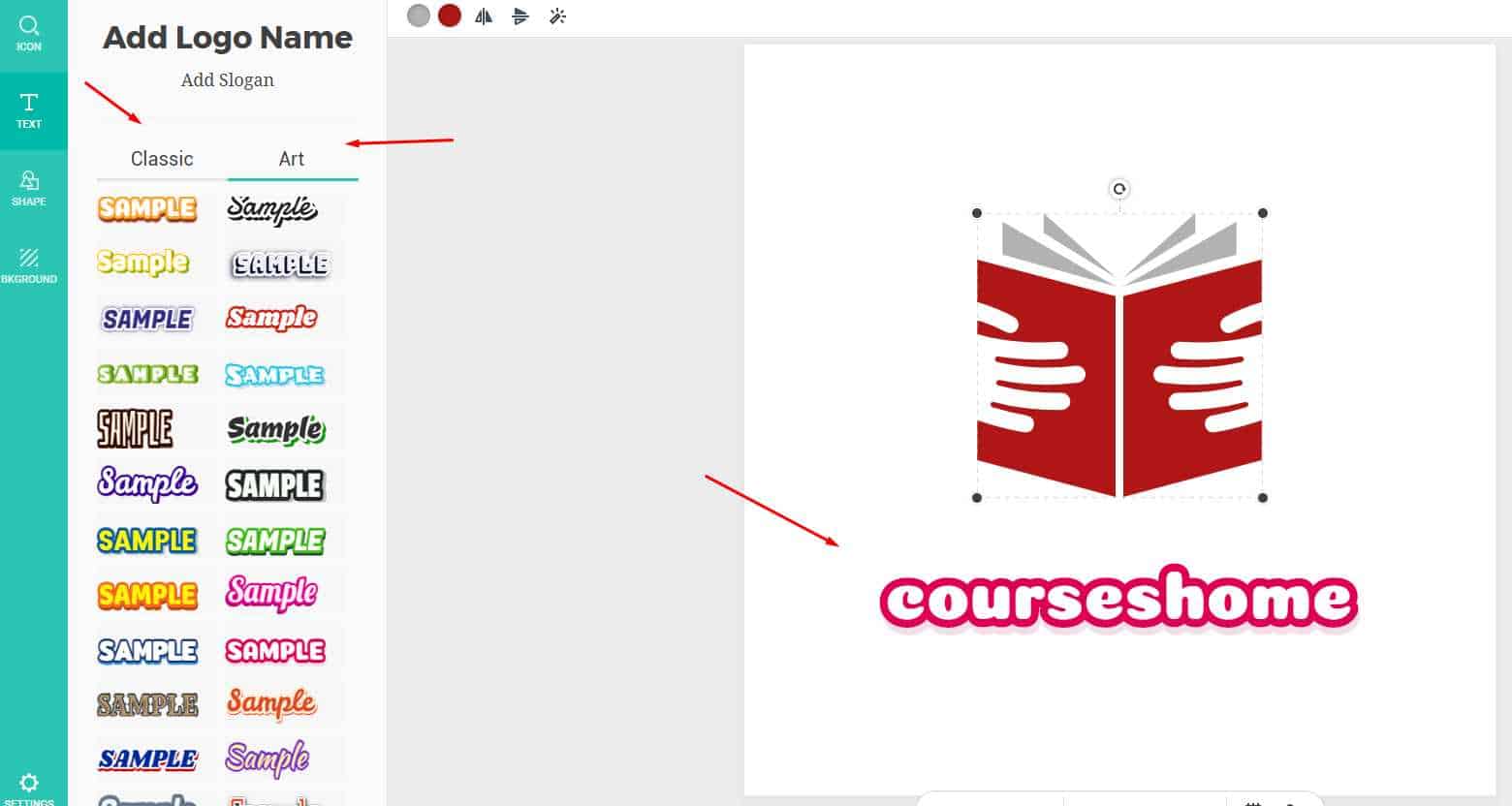 - تستطيع الآن تحرير الجملة المكتوبة على اللوجو لتضع اسم شركتك أو صفحتك ،لذلك سوف نقوم بتغييرها إلي بيت الكورسات .
