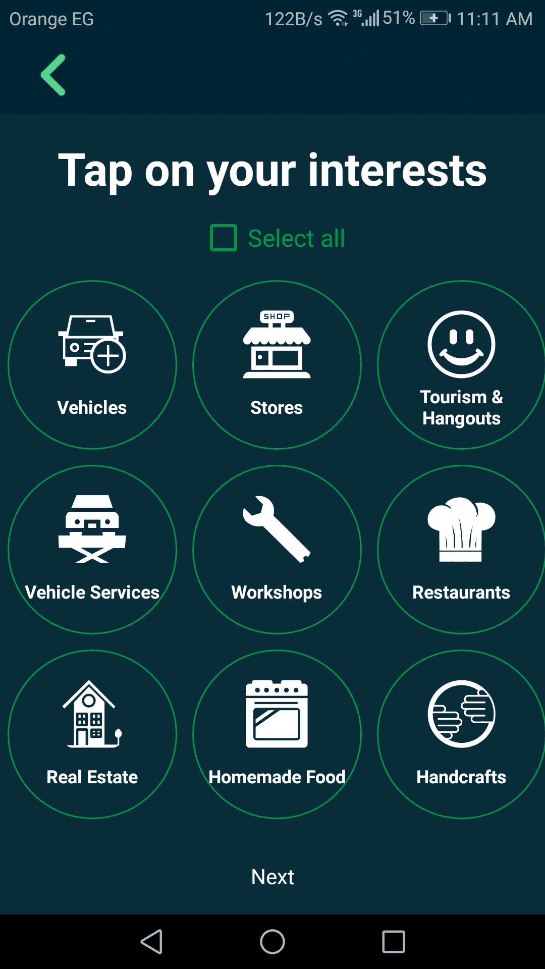 في تلك الخطوة ستقوم بتحديد السلع والخدمات التي تثير اهتمامك وعلى الفور ستظهر لك في واجهة التطبيق الرئيسية .