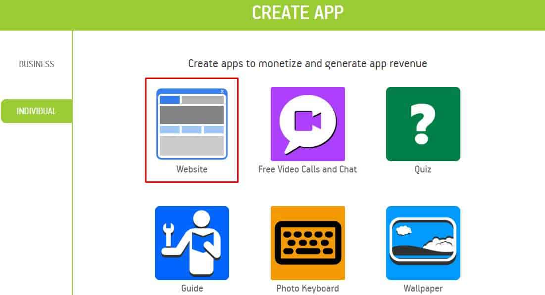- في الصفحة التالية سوف تجد خيارات عليك الاختيار بينهم الأول هو CREATE APP TO GROW وهو خاص بالمستخدمين الذين يرغبون في جلب زيارات لمواقعهم واستقطاب أكبر عدد من الزائرين ولا يرغبون في جني الأرباح من التطبيق ،والخيار الثاني هو CREATE APP TO EARN وهو مفيد للمستخدمين الذين يرغبون في إنشاء تطبيق اندرويد للربح منه عن طريق الإعلانات .