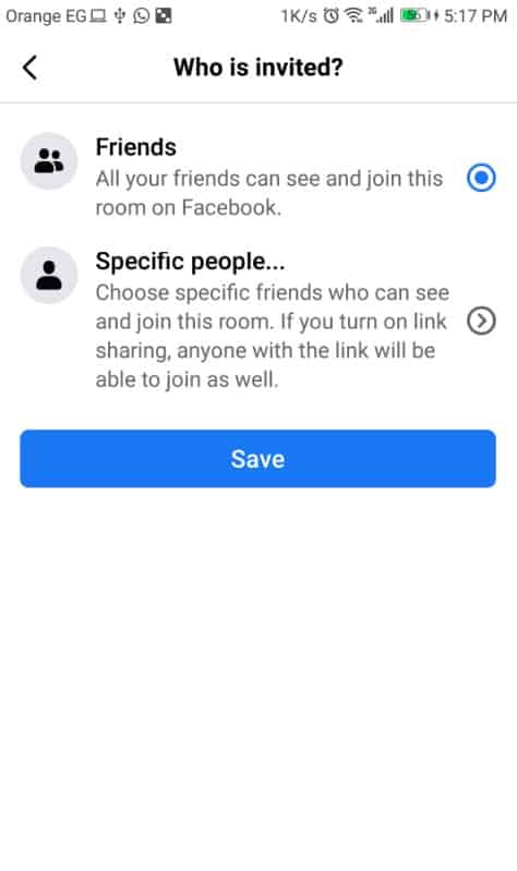 الخيار الثاني وهو من المدعو هو الأهم من وجهة نظري فهو يساعدك في تحديد من يمكنه الدخول إلي غرفتك الجديدة هل جميع أصدقائك أو يمكنك تخصيص مجموعة معينة وإرسال الدعوة إليهم كما هو بتلك الصورة أيضاً .
