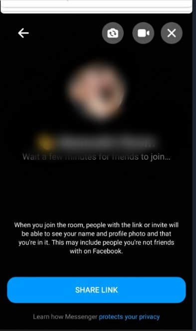بعد ذلك سوف تظهر لك واجهة الغرفة كما هو بتلك الصورة بالضبط ويمكنك عزيزي القارئ مشاركة رابط الدخول إلي الغرفة مع من تريد بكل سهولة من خلال الضغط على Share link أو مشاركة الرابط .