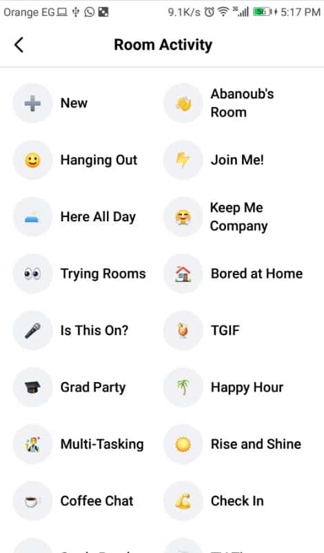في البداية عزيزي القارئ سنبدأ مع نشاط الغرفة وكما هو موضح من تلك الصورة سوف تظهر لك الكثير من الخيارات التي يمكنك الاختيار من بينهم مثل تجربة الغرفة أو تشعر بالملل في المنزل هذا بالإضافة إلي أنه يمكنك إضافة نشاط جديد من خلال الضغط على New كما هو بتلك الصورة بالضبط .