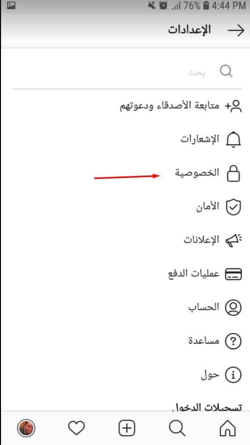 والآن ستظهر أمامك مجموعة كبيرة جداً من الإعدادات المختلفة كل ما عليك القيام به فقط هو الضغط على خيار الخصوصية كما هو موضح للبدء في عملية إخفاء ستوري انستقرام عن شخص معين .
