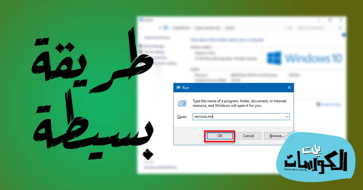 - في قائمة Run قم بكتابة الأمر services.msc ثم اضغط على Enter .