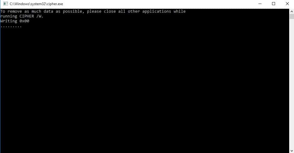 كما ذكرنا فإن هذه الطريقة صالحة للاستخدام مع جميع إصدارات الويندوز حيث تعتمد على الأمر cipher /w:c والموجود في معظم إصدارات الويندوز الأخيرة وذلك عن طريق الخطوات التالية :
