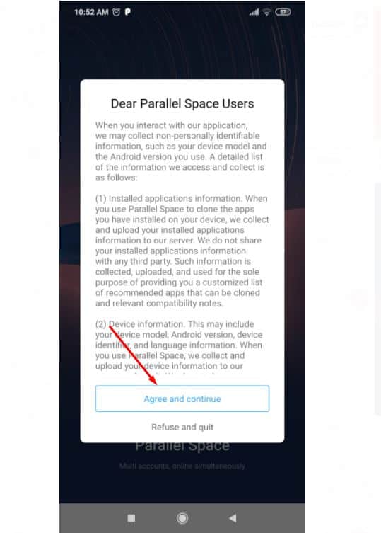 - في النافذة الأولي قم بالموافقة على شروط الاستخدام عن طريق الضغط على Agree and continue .