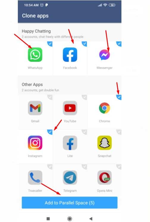 - بعد تحديد التطبيقات قم بالضغط على Add to Parallel Space .